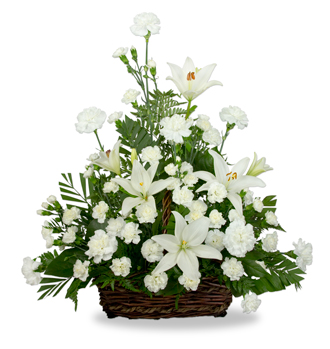 Local florists carefully select white lilies for this arrangement because they symbolize the restoration of innocence after someone has passed away. This means that the departed is now in a better place full of light and peace, which is a comforting message to give to those mourning their loved one's passing. The Serene Lily Basket is a beautiful way to honor the dead and show your support to those who are grieving.
